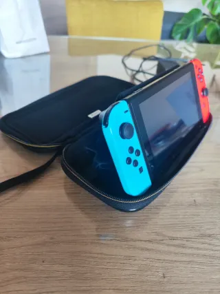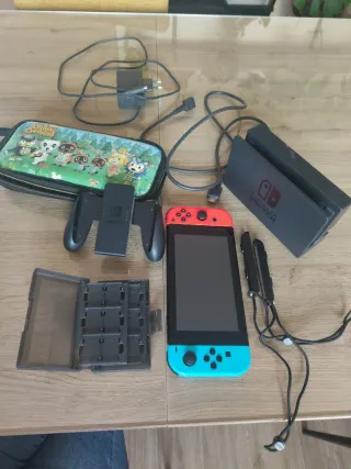 Consola Nintendo Switch en buen estado, con todos sus accesorios. - Consola comprada hace dos años y con poco uso. - Estación de carga, cargador y HDMI. Todo original. - Mandos oficiales, el mando auxiliar y los terminales individuales. También todo original y con poco uso. Se regala funda de Animal Crossing con estructura para apoyar la consola y la caja para almacenar hasta 24 juegos. También a la venta en mi perfil: -Animal Crossing 35€ -Profesor Layton 20€ -Mario Kart 8 Deluxe 35€ -Fifa 2024 12€ -Pokemon Escudo 25€ Si te quedas la Nintendo y los 5 juegos: 250€ Pregúntame para otra combinación de consola+juego 😊
