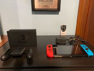 Consola Nintendo Switch con sus accesorios. - Incluye adaptador de corriente - Incluye base de carga. - Mando Joy-Con en color azul y rojo. Todo oficial de Nintendo - No incluye caja oficial de la consola