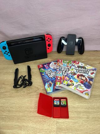 Consola Nintendo Switch completa con sus accesorios originales. - Incluye Joy-Con (azul y rojo). - Dock para TV. - Cargador y cables. - Estuche de transporte. - Mando Pro.