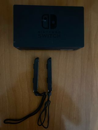 Consola Nintendo Switch V1 con accesorios. En buen estado. Le falta la tapa que soporta la tablet, la que tapa la ranura Micro SD. Por lo demas solo tiene lo que se ve en 3a foto, 2 pequeños plasticos rotos. No afecta en nada. A su funcionamiento. Pantalla con algun arañazo. Los joycon vienen con un protector usado, el protector esta algo desgastado. Pero los joycon funciona perfectamente. No se admiten devoluciones - Incluye volante. - Incluye Joy-Con grip. - Incluye funda de transporte. - Incluye base de carga. - Incluye cargador.