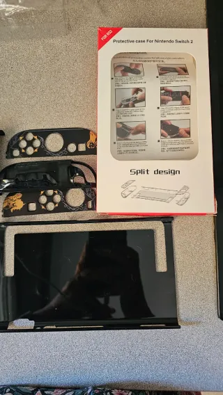 Funda protectora diseñada para la Nintendo Switch OLED. Incluye un diseño dividido para mayor versatilidad. - Protege tu consola y mandos. - Diseño con detalles dorados. - Material resistente.