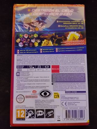 2 UNIDADES de Juego Dragon Ball Sparking Zero para Nintendo Switch. - Carátula con arte de personajes. - Clasificación PEGI 12. - Tarjeta de juego incluida.