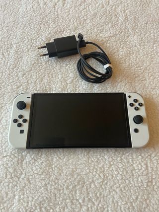 Vendo mi Nintendo Switch modelo OLED en blanco y negro. Incluye cargador. Solo incluye lo que se ve en el anuncio. Los joycons están perfectos, no tienen drift. HAGO ENVÍOS 📦 DE 160€ NO LA BAJO. - Pantalla OLED de 7 pulgadas. - Cable de alimentación.
