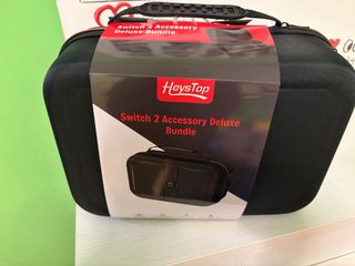 Estuche rígido de la marca HoysTop, diseñado para Nintendo Switch y sus accesorios. Protege tu consola y complementos con este estuche duradero. - Material exterior resistente. - Cierre de cremallera. - Asa de transporte. - Compartimentos internos para accesorios.