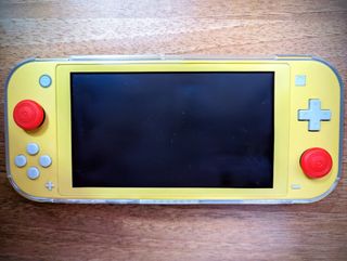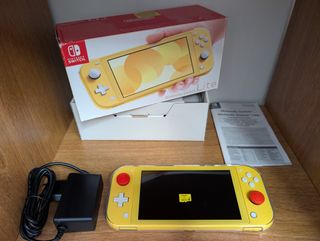 Consola portátil Nintendo Switch Lite color amarillo, en su caja original y con cargador. Tiene algunas marcas de uso pero funciona perfectamente. Incluye accesorios extras: - Tarjeta microsd 256GB Nintendo original con juegos - Funda protectora transparente. - Joysticks de silicona rojos. - Cristal templado protector de pantalla NO NEGOCIABLE