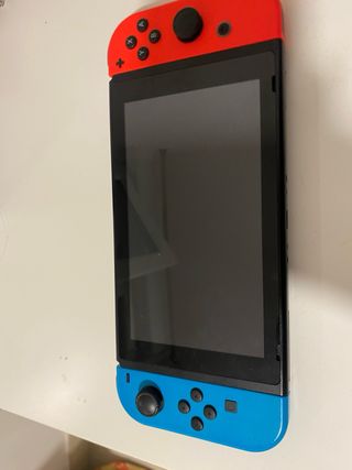 Vendo Nintendo Switch modelo V1 en perfecto funcionamiento. Incluye todo lo original: • Consola Nintendo Switch • Joy-Con azul y rojo • Dock original • Cargador original • Grip para Joy-Con • Correas para Joy-Con La consola funciona perfectamente, enciende sin problemas y se ha usado con normalidad. Tiene marcas leves de uso estético (ver fotos), nada que afecte al funcionamiento.