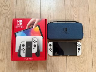 Consola Nintendo Switch modelo OLED. - Color blanco - Incluye funda de transporte azul.