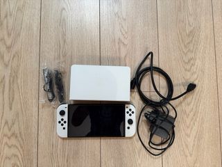 Consola Nintendo Switch OLED en color blanco, con el juego Super Mario Odyssey incluido. - Incluye Joy-Con (L) y Joy-Con (R). - Base de carga. - Cable HDMI. - Adaptador de corriente. Único detalle a tener en cuenta: la goma del joystick izquierdo está desgastada, pero el stick funciona sin ningún fallo.
