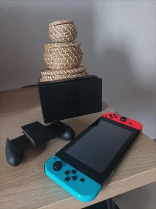 •Consola Nintendo Switch con sus accesorios. - Incluye base de carga. -Cargador Original - Mando - Joy-Cons en azul y rojo sin drift, están perfectos. • la consola tiene muy poco uso se entrega con algunos juegos descargados y dos en cartucho de super Mario en perfecto estado. • Se entrega con su caja original. (Para más info escribeme 😊) - se entrega en mano -