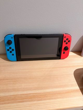 Consola Nintendo Switch con sus controles en azul y rojo, lista para jugar. - Controles Joy-Con desmontables. - Pantalla táctil en perfecto estado - Cargado y soporte sin usar Vendo la Nintendo porque ya tengo la 2