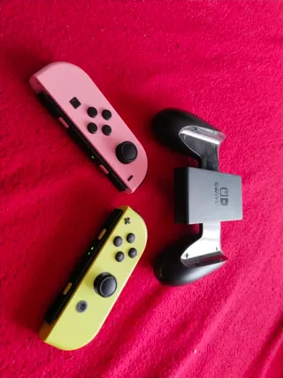 Par de Joy-Con originales para Switch en llamativos colores rosa y amarillo va con el adaptador como aparece en la foto - Incluye un Joy-Con izquierdo y un Joy-Con derecho. - Diseñados para una experiencia de juego versátil.