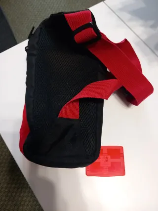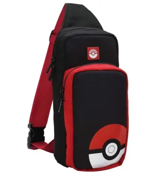 Bandolera negra y roja con diseño de Pokémon, ideal para llevar tu Nintendo Switch y accesorios. Cuenta con un compartimento principal y un bolsillo frontal. - Diseño inspirado en Pokémon. - Correa ajustable para mayor comodidad. - Cremalleras resistentes.