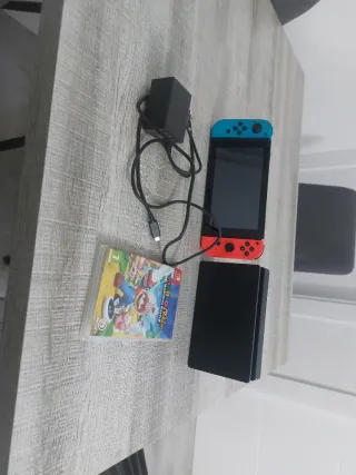 Consola Nintendo Switch con accesorios. - Incluye juego Mario + Rabbids Kingdom Battle. - Base de carga. - Adaptador de corriente.*La caja no la tengo*
