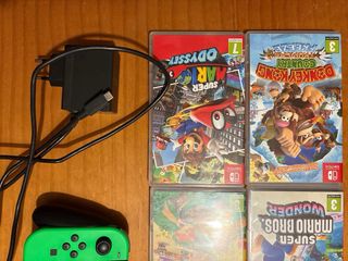 Consola Nintendo Switch con accesorios y cuatro videojuegos. Juegos: - NBA 2K18 - Animal Crossing: New Horizons - Super Mario Odyssey - Donkey Kong Country: Tropical Freeze - Super Mario Bros Wonder Accesorios: - Base de carga adicional para los mandos. - Cargador y base de la consola. - Segundo mando adicional. Joy-Con (izquierdo verde, derecho rosa). - Funda para la consola. - Incluye instrucciones originales. En perfecto estado. Preferible venta en mano. En Madrid o Valladolid.