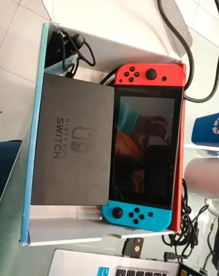 Consola Nintendo Switch en color rojo. - Joy-Con rojos. - Pantalla táctil. - Incluye base de carga y mando La consola tiene marcas de uso pero funciona perfectamente la vendo barata por quitrmela de encima por que no la uso pa nada