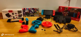 Consola Nintendo Switch en perfecto estado, lista para jugar. Incluye juegos digitales y suscripción online de 3 meses También juegos físicos y accesorios. Incluye juegos DIGITALES en la cuenta Nintendo que se entrega con la consola: -Mario Kart 8 Deluxe -Fortnite - Pokemon home - Stumble guys -Football cup 2021 -SEGA Mega Drive Classics. Juegos FÍSICOS: -Minecraft -Pokémon Púrpura -Mario Party Accesorios incluidos: -Joy-Con rojo y azul -Base/dock y cable de carga original - HDMI - 3 meses de Nintendo Switch Online (código sin activar) -Maletín de transporte -Protector de pantalla instalado -Carcasa protectora -Accesorios