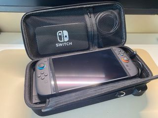 Consola Nintendo Switch con 256GB de almacenamiento. Incluye los Joy-Con en azul y rojo. - Capacidad de 256GB. - 2 joycons originales adicionales - 1 mando pro de otra marca (Wired) - Cargador oroginal - Dock -Funda para viajes Tiene la game card rota
