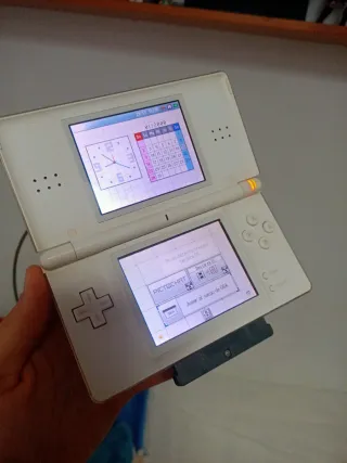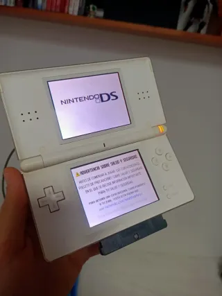 Consola portátil Nintendo DS Lite en color blanco con su cargador. Ideal para llevar tus juegos a todas partes. Funcionan perfectamente táctil y altavoces,Lee juegos de Game Boy pero no de la Ds y tiene 2 manchas blancas en la pantalla superior en las esquinas de la izquierda como se puede apreciar - Botones de control direccional y botones de acción. - Ranura para cartuchos de juego. . . . nintendo ds clásica, nintendo ds original, nds blanca, consola nintendo retro, nintendo ds funcionando, nintendo ds primera generación, consola portátil nintendo, nds retro gaming, nintendo ds fat, consola portátil clásica, nintendo ds para cole