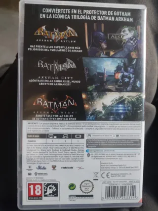 Videojuego Batman Arkham Trilogy para Nintendo Switch. - Incluye los tres títulos de la saga. - Clasificación PEGI 18. - Requiere descarga por internet.