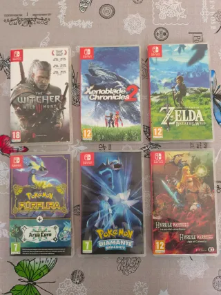 Nintendo switch juegos Pokemon diamante brillante. 30€ Hyrule warriors la era del cataclismo. 35€ Pokemon purpura + el tesoro del área oculta. (CODIGO SIN USAR). 90€ Xenoblade 2 chronicles. 45€ Le legend of Zelda. 35€ The withcher Wild hunt. 30€ Se pueden vender por separado o puedo vender el lote entero. No acepto trueques y el precio no es negociable.