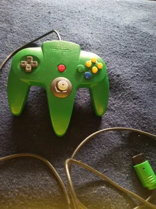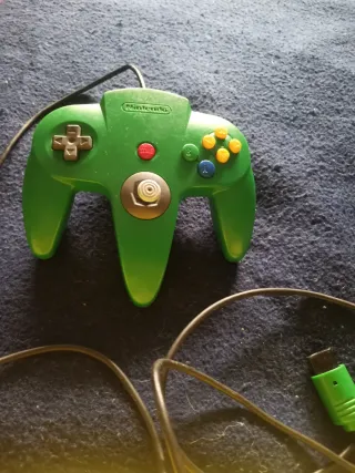 Mando de color verde para Nintendo 64. Funciona bien, aunque el joystick tiene algo de holgura. - Diseño ergonómico característico. - Botones de acción y cruceta. - Joystick central.