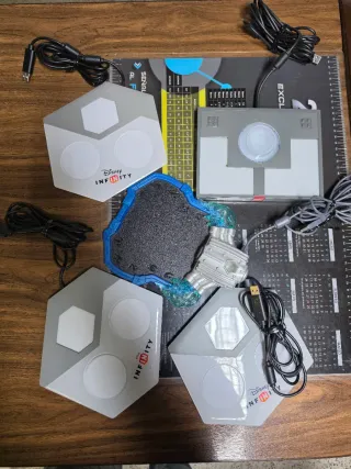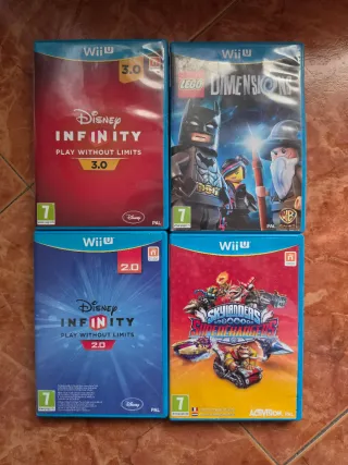 Lote de cuatro videojuegos para Wii U. - Disney Infinity 3.0 - LEGO Dimensions - Disney Infinity 2.0 - Skylanders SuperChargers