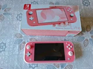 Consola portátil Nintendo Switch Lite en color rosa. Fundas incluidas. Una trasparente y otra externa rosa con cremallera. Protector de joystick y cristal instalado. En perfecto estado. - Diseño compacto y ligero. - Pantalla táctil. - Botones de control integrados.