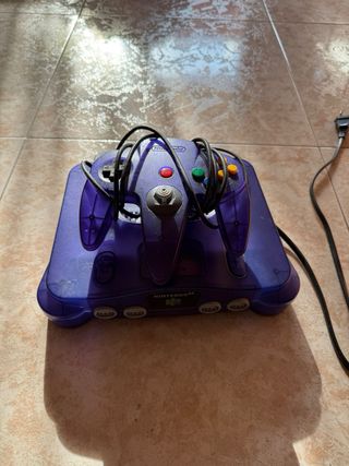 Consola Nintendo 64 en llamativo color morado. Ideal para coleccionistas y amantes de los videojuegos retro. - Diseño icónico de la consola. - Incluye dos mandos morados.