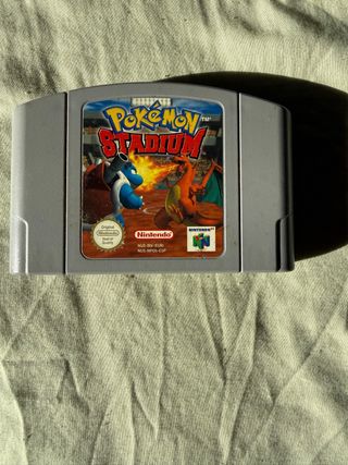 Videojuego Pokémon Stadium para Nintendo 64. - Cartucho gris. - Carátula con diseño de Pokémon Stadium. - Sello de calidad Nintendo.