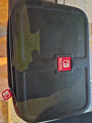 Funda protectora para Nintendo Switch color negro con detalles en rojo original de nintendo. - incluye cable hdmi - adaptador para usar los joy-con como un mando de consola. - 2 fundas para 4 juegos cada una. - incluye protector de pantalla, ya puesto en la nintendo.