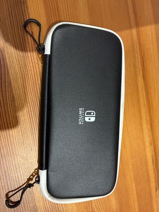 Funda protectora para Nintendo Switch. - Diseño bicolor en negro y blanco. - Cierre con cremallera. - Incluye asa para transporte.