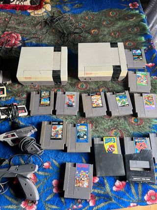 Vendo lote completo de Nintendo NES original, ideal para coleccionistas 🔹 Incluye: • 2 consolas NES • 13 juegos originales • 2 pistolas Zapper • 3 mandos • Cables y accesorios de las fotos ⚠️ IMPORTANTE: No se ha podido probar nada por no disponer de TV antigua compatible. Se vende sin probar, tal cual se ve en las imágenes y sin garantía. 🎮 Juegos (13): Ice Climber · Snow Bros · Duck Hunt · The Goonies II · Rainbow Islands · Teenage Mutant Ninja Turtles · Boulder Dash · Street Fighter 2010 · Turbo Racing · Super Mario Bros 3 (suelto) · Pro Wrestling · Mario Bros / Duck Hunt · Dr. Mario 👉 lote completo 💬 0€para escuchar ofertas