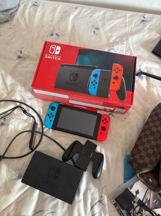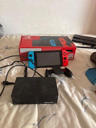 Consola Nintendo Switch en excelente estado, casi sin uso. - Incluye Joy-Con (L) azul y Joy-Con (R) rojo. - Base de carga para Nintendo Switch. - Adaptador de corriente. - Soporte para Joy-Con. - Cables HDMI y de corriente. - Funda originaria de Switch - Juego Xenoblade Chronicles 3