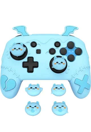 Funda protectora de silicona para Nintendo Switch con un diseño divertido. - Material de silicona suave al tacto. - Diseño con temática de fantasía y criaturas adorables. - Protege tu consola de golpes y arañazos. - Incluye accesorios decorativos para los joysticks.