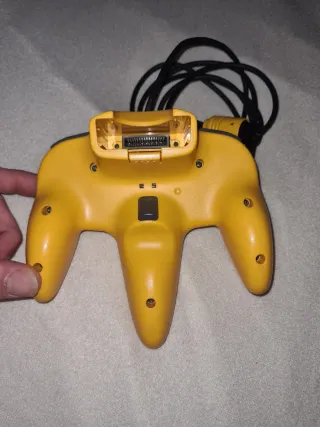 Controlador clásico para la consola Nintendo 64 en un llamativo color amarillo. - Diseño ergonómico característico. - Botones de acción y cruceta. - Palanca de control central.
