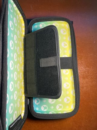 Consola Nintendo Switch con Joy-Cons en azul y rojo, lista para jugar. Incluye varios accesorios para complementar tu experiencia. - Mando Pro Controller con agarres verde y rosa. - Base de carga. - Cargador de corriente. - Cable HDMI. - Stand protector con leds y mando a distancia. - Juego Mario Kart 8 Deluxe. - Funda de transporte con diseño de The Legend of Zelda. En la última foto se aprecia un pequeño daño en la rejilla de ventilación. No afecta a su uso para nada.