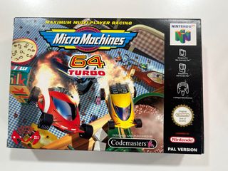 Videojuego Micro Machines 64 Turbo para Nintendo 64. - Diseñado para N64 Controller Pak. - Diseñado para N64 Rumble Pak. - 1-8 jugadores simultáneos. - Versión PAL. Caja, instrucciones, insert, cartucho...todo impoluto, como recién comprado. Ideal coleccionistas. No negociable. No envío