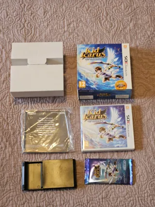Edicion de lanzamiento en caja del Kid Icarus para Nintendo 3DS, uno de los juegos más valorados de la consola. Está completo, incluye el juego, los manuales, el soporte para la Nintendo 3DS (sin usar) y el sobre de cartas (sin abrir).