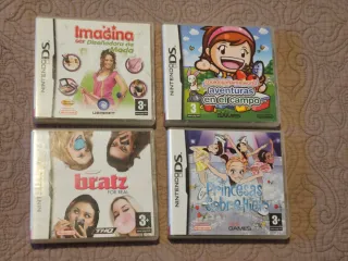 Pack de cuatro videojuegos para Nintendo DS. - Imagina ser Diseñadora de Moda - Cooking Mama World: Aventuras en el Campo - Bratz: For Real - Princesas Sobre Hielo