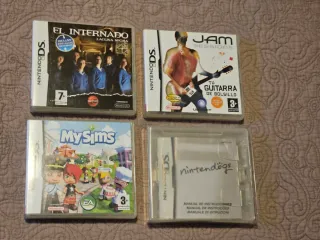 Conjunto de cuatro videojuegos para Nintendo DS. - El Internado: Laguna Negra - Jam Sessions: Tu Guitarra de Bolsillo - My Sims - Nintendogs (sin caratula)