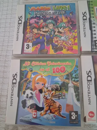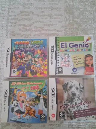 Pack de cuatro videojuegos para Nintendo DS. - Mario & Luigi: Partners in Time - El Genio de las Palabras - Mi Clínica Veterinaria en el 100 - Nintendogs Dalmatian & Friends