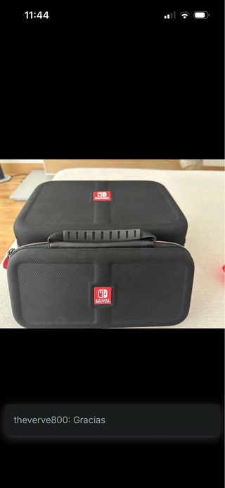 Funda protectora para Nintendo Switch en color negro, ideal para transportar tu consola y accesorios de forma segura. Incluye dos cartuchos de juegos en color rojo. - Diseño resistente y acolchado. - Cierre de cremallera. - Dos cartuchos de juegos incluidos.