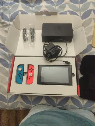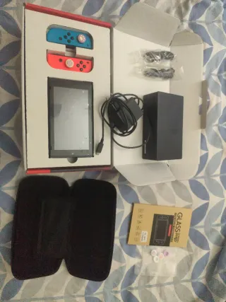 Consola Nintendo Switch usada muy poco, prácticamente nueva. - Incluye Joy-Con en rojo y azul. - Pantalla táctil. - Base de carga y cables. - Funda protectora. - Protector de pantalla de cristal templado.