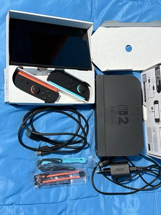 Vendo Nintendo switch 2 prácticamente nueva con menos de 50 horas de usa ya que no la uso por qué no tengo tiempo para ello, funciona a la perfección y no tiene ningún rasguño ya que nada más terminar de usarla se a vuelto a guardar en la caja tal y como venía. Aparte la vendo con un Mario bros deluxe que compré a parte del Mario kart world que viene con ella, el precio puede llegar a ser negociable