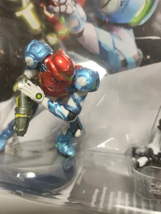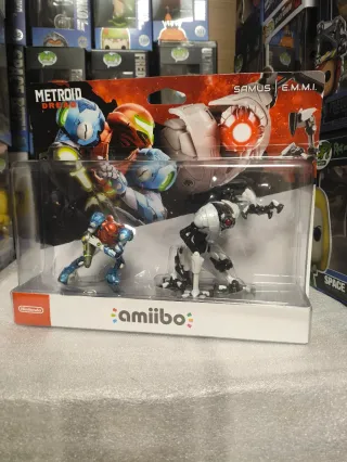 Figura Amiibo de Samus y E.M.M.I. del videojuego Metroid Dread. - Incluye dos figuras. - Diseño detallado de los personajes.