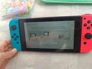 Consola Nintendo Switch en perfecto estado y con muy poco uso con caja y embalaje original. - Incluye dos juegos: Mario Kart 8 Deluxe y Animal Crossing: New Horizons. - Funda de transporte con diseño de Animal Crossing. - Joy-Cons en color azul y rojo.