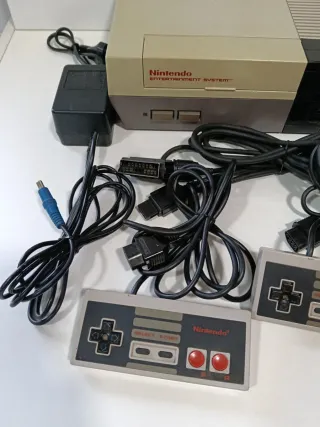 Consola Nintendo NES con mandos y cables