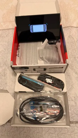 Consola Nintendo Switch OLED con Joy-Cons en azul y rojo. Incluye todos los accesorios originales para empezar a jugar. Con muy poco uso. Incluye: - Base de carga para la consola. - Dos Joy-Cons (uno azul y uno rojo). - Agarre para Joy-Cons. - Correa para Joy-Cons. - Cable HDMI. - Adaptador de corriente. - Juego The Legend of Zelda: Breath of the Wild. - Funda de transporte. - Protector de pantalla de cristal desde el primer día. - Funda con agarre para modo portátil. Precio algo negociable.