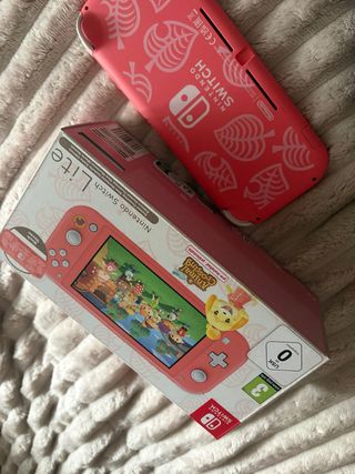 Consola Nintendo Switch Lite, edición especial Animal Crossing. - Solo se a utilizado en tres ocasiones - muy poco uso - Color rosa. - Incluye juego Animal Crossing: New Horizons preinstalado. - Diseño con motivos de hojas.