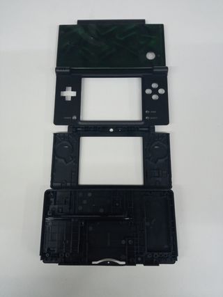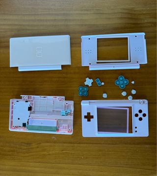 Piezas de recambio para la carcasa de tu Nintendo DS Lite. Incluye todos los tornillos originales de la carcasa. Tiene un pequeño defecto en la tapa trasera, pero no afecta a su funcionamiento ni está rota. - Carcasa superior. - Carcasa inferior. - Botones y cruceta. - Marco de pantalla.